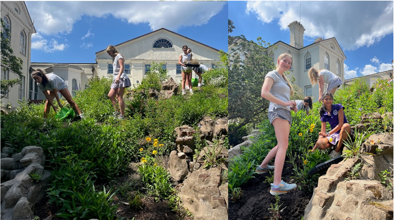 Students at Ashley Hall School in Charleston, SC, working in a unique native plant garden on their campus. (It surrounds what was once a bear cave for the former landowner’s pet!) Photo credit: Ashley Hall school.
