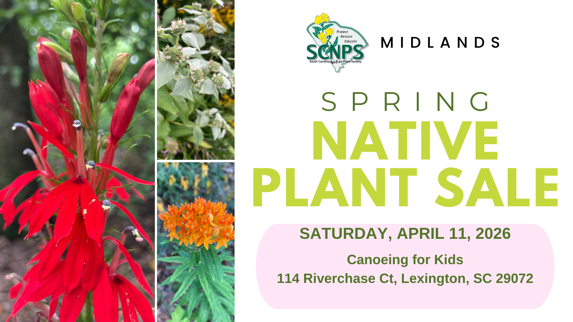 Spring will be here before we know it, so mark your calendars for the Midlands Spring Native Plant Sale! Shop beautiful, beneficial plants that bring joy and nurture wildlife in your garden. These are exactly the plants South Carolina birds, bees, and butterflies need to thrive. We’ll have a great plant selection again at the budget-friendly prices we’re known for.